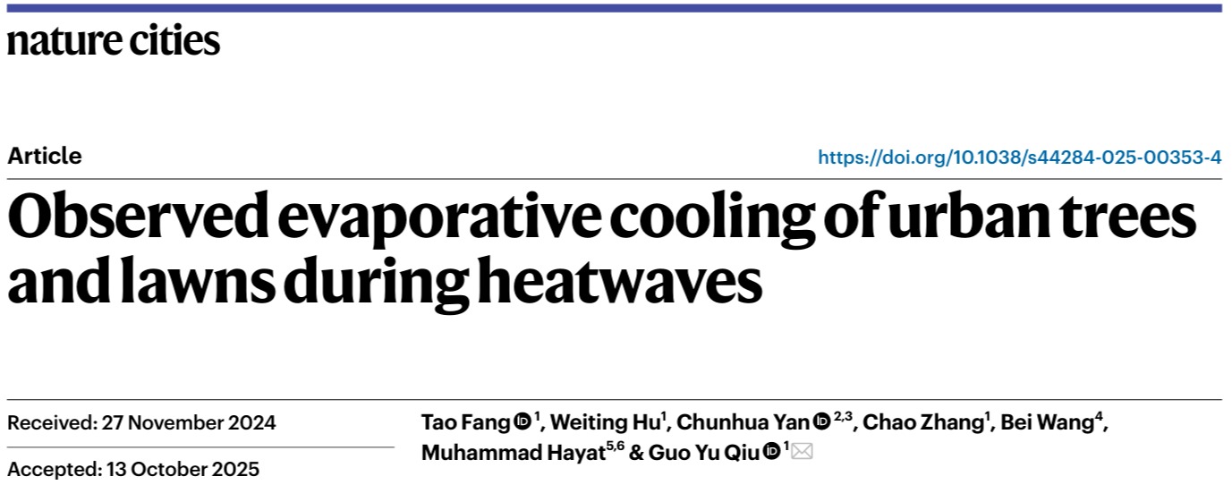 环境与能源学院邱国玉教授团队在《Nature Cities》发表最新研究,揭示热浪来袭城市植被如何降温
