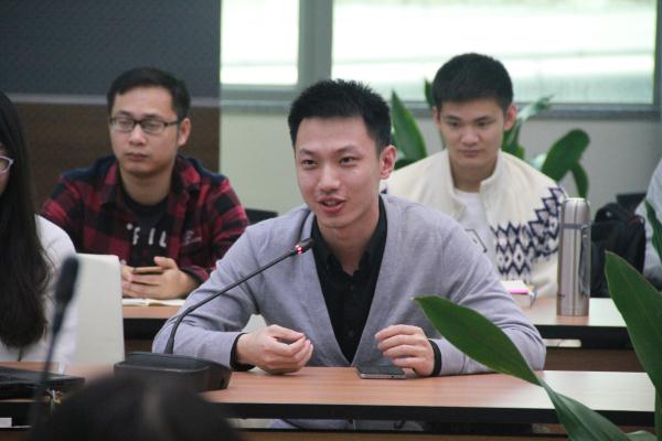 随后两名15级优秀预备党员代表陈文廷、戴广大同学分别就自己入党经历与感悟进行了分享,并给在场的入党积极分子一些建议,希望他们端正入党动机,积极参加各种校内外的活动,多为同学们服务,争取早日入党。在最后的提问与交流环节,同学们积极发言,大家就自己关心和疑惑的问题与谭老师进行了交流。