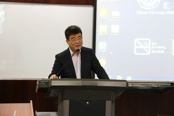 早上10点半,研讨会正式开始,北大汇丰商学院院长海闻教授致辞欢迎诸位来访的专家学者,他首先介绍了北大汇丰商学院的发展历程,学院的发展理念和状况。结合中国内地特别是深圳市蓬勃发展的状况,他表达了加强深圳-香港两地未来深入交流和密切合作的愿望,希望通过类似的研讨会加强深港两地的学术合作,碰撞出新的火花。最后,海闻院长祝愿来访的各位老师学者参会愉快,预祝会议成功举办。