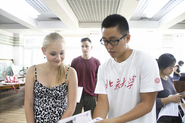 同样来自德国的Maria是汇丰商学院招收的第一届国际交换生之一,她是个金发碧眼的姑娘,在来深圳之前曾经去过韩国和日本,从此之后对亚洲文化非常着迷。她在德国的大学与北京大学汇丰商学院签订了交流协议,按照协议,所有交换生将在深圳学习6个月,可以选修金融学、管理学和经济学的任何课程。Maria说,此前汇丰商学院每年都会派中国学生去德国和其他国家交换,但是这是第一次由中国的研究生院接收外籍交换生,于是她第一时间报名参加。据Gretta老师介绍,汇丰商学院已经与30所大学开展了交换生项目,认证工作进展顺利。国际法学院目前交换项目也达到12个。今年汇丰商学院一共招收了10个外籍交流生,国际法学院招收了8个,大部分来自德国和丹麦等欧洲国家。今后还将扩大交换生规模,不仅要“引进来”也要“走出去”,促进中外文化的交流。