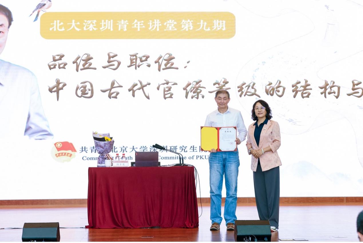 2025年11月7日晚,由共青团北京大学深圳研究生院委员会主办的北大深圳青年讲堂(第9期):“品位与职位:中国古代官僚等级的结构与意义”成功举办。北京大学历史学系、中国古代史研究中心教授、国家文科一级教授阎步克应邀进行主题分享。北京大学深圳研究生院党委副书记、纪委书记安晓朋,深研院师生,在深校友以及其他深圳高校师生共计七百余人现场参与。