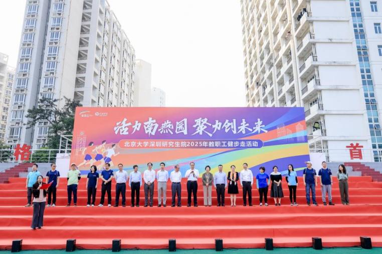 香港北大之友创会会董、北京大学名誉校董陈国钜,北京大学教育基金会名誉理事陈伍玉华,香港北大之友会董、北京大学名誉校董陈上智,香港北大之友创会会董伍嘉伟,香港北大之友崔劲中,北京大学党委常委、常务副校长、深圳研究生院院长张锦,深圳研究生院党委书记谭文长,北京大学教育基金会副秘书长耿姝,深圳研究生院副院长王天兵、牛宏伟,党委副书记、纪委书记安晓朋,工会主席邹月娴,院长助理陈娇娇、仝德以及各学院领导和职能部门负责人出席活动。近三百五十名教职工齐聚操场,步伐坚定、神采飞扬,共同融入这幅由湖光、绿意、笑语与汗水交织而成的南燕画卷。活动由新材料学院安瑾主持。