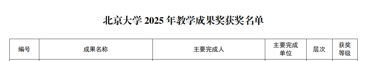 北京大学教学成果奖是北京大学为表彰长期在教学一线作出突出贡献的教师而设立的重要教学荣誉,旨在宣传和推广获奖教学成果,鼓励和支持广大教师积极开展教育教学研究,深化教学改革,强化内涵建设和成果培育,提升教学水平和教育质量。奖项根据国务院《教学成果奖励条例》和《北京市教育教学成果奖评审奖励办法》等文件精神,按照《北京大学教学成果奖励实施办法》组织评审。评选工作严谨规范,包括教师申报、院系评审推荐、学校评审与公示等环节,确保获奖成果的代表性与示范性。