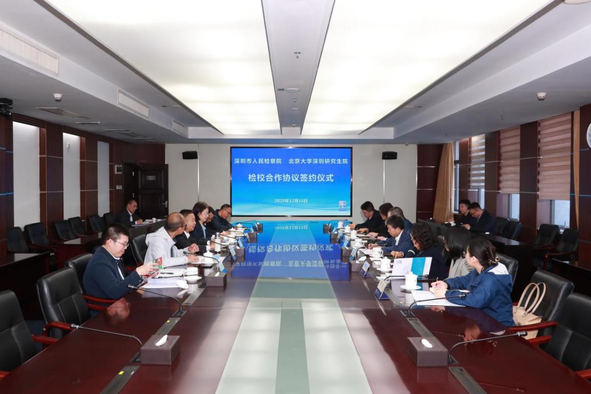 12月15日下午,北京大学深圳研究生院与深圳市人民检察院在市检察院举行检校合作签约仪式。北京大学深圳研究生院党委书记谭文长和深圳市人民检察院党组书记、检察长李小东出席签约仪式并致辞。深圳市人民检察院党组成员、政治部主任张丽主持签约仪式。北京大学深圳研究生院党委副书记、纪委书记安晓朋、国际法学院执行院长Mark Feldman教授及国际法学院、学生工作处相关负责人、老师,深圳市人民检察院干部处、组织教育处、法律政策研究室及国家检察官学院粤港澳大湾区分院相关负责同志参加签约仪式。