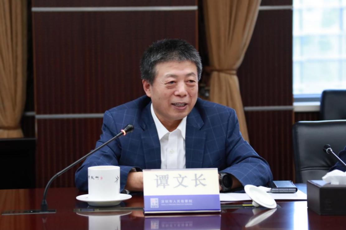 谭文长在致辞中对深圳市人民检察院高度重视检校合作及双方前期合作取得的成效表示赞赏,对深圳检察机关长期以来的关心支持表示感谢。他详细介绍了北京大学深圳研究生院的办学情况、师资力量、教育成果、特色优势,指出在新时代新征程上高等院校和政法单位都肩负着法治建设和人才培养的重任,希望检校双方双向奔赴,叠加理论与实践优势,共同推动特区法治建设高质量发展;促进教、研、用融合,持续提升涉外法治研究水平;加强涉外法治人才培养,更好满足社会需求和人民期待。