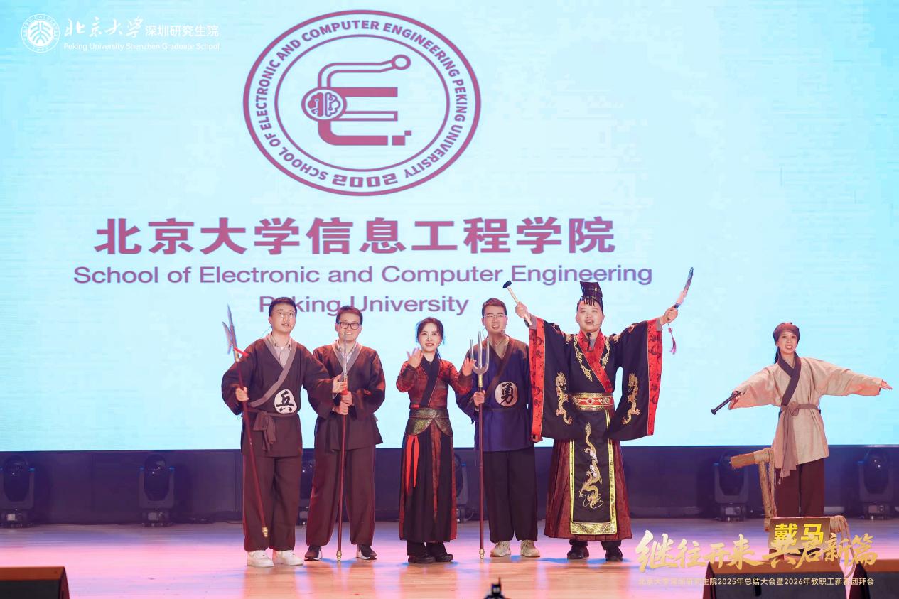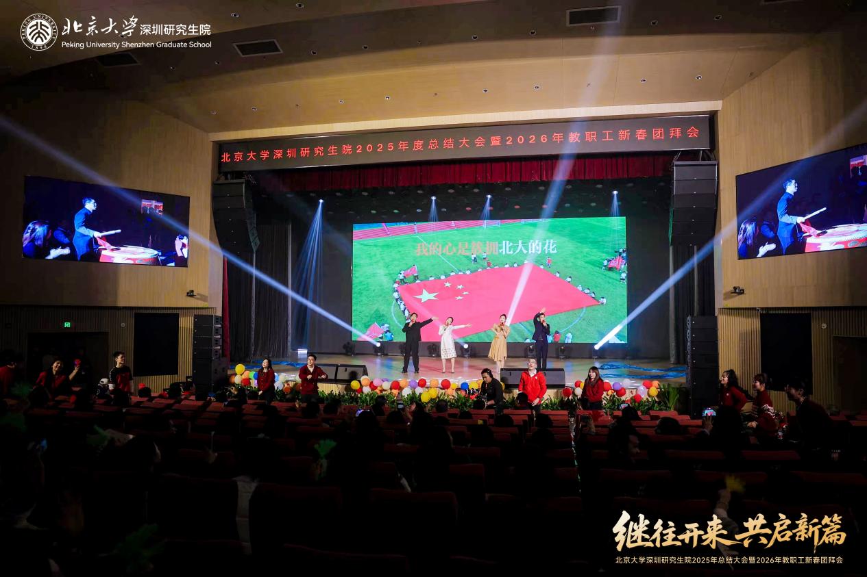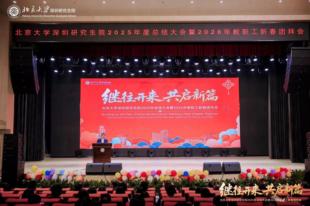 廿五载韶华如颂,南燕园行稳致远。为回首过去一年的耕耘与硕果,展望新程、共迎春晖,2026年1月16日,北京大学深圳研究生院(以下简称“深研院”)隆重举行题为“继往开来,共启新篇”的2025年度总结大会暨2026年教职工新春团拜会。北京大学党委常委、常务副校长、深研院院长张锦,北京大学校务委员会副主任、汇丰商学院创院院长海闻,深研院原常务副院长史守旭,原党委书记、副院长栾胜基,深研院党委书记谭文长,常务副院长杨震,副院长王天兵、牛宏伟、田永鸿,党委副书记、纪委书记安晓朋,党委副书记刘海骅,院长助理陈娇娇、仝德,各学院、部门负责人与全体教职员工齐聚一堂,共襄盛会,同贺新春。