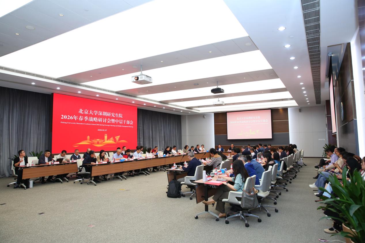 2026年2月27日,北京大学深圳研究生院召开2026年春季战略研讨会暨中层干部会,研讨深研院“十五五”规划以及2026年重点工作。北京大学党委常委、常务副校长、深圳研究生院院长张锦,深研院党政领导班子、“两委”委员、中层干部、教工党支部书记参加会议。会议由深研院党委书记谭文长主持。