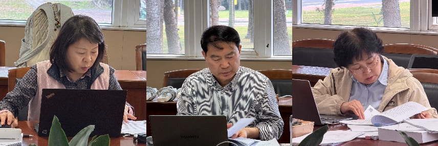 财务专家组审核材料并进行质询讨论(左起为杨晓娟、安发亮、李春梅)