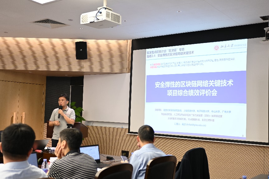 2026年3月27日,由北京大学深圳研究生院作为牵头单位的国家重点研发计划“区块链”重点专项“安全弹性的区块链网络关键技术”项目综合绩效评价会议在北京大学深圳研究生院召开。工业和信息化部产业发展促进中心项目专员左奇伟、项目主管苏轩,综合绩效评价专家组专家,北京大学深圳研究生院副院长王天兵,以及项目负责人、课题负责人、第三方测试机构代表、用户代表、审计机构代表等三十余人出席了会议。