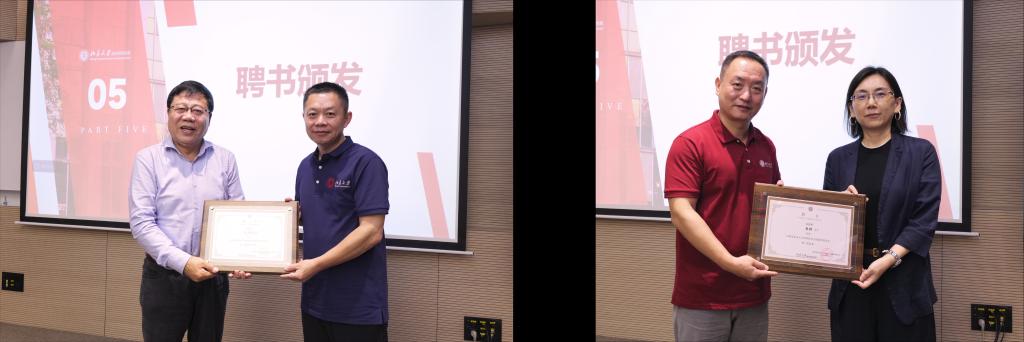 为新任理事王天兵、江必旺,新任监事朱颖颁发聘书。