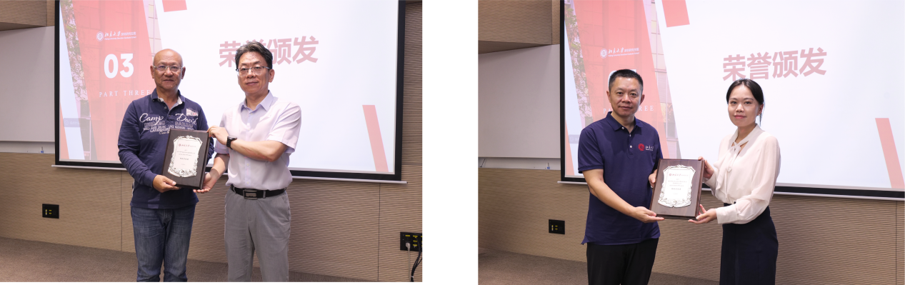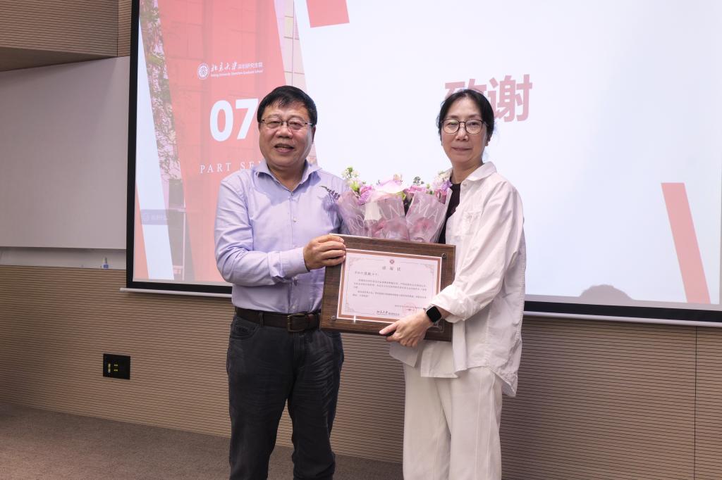 向捐赠人代表深圳市中铁城实业发展有限公司、深圳市松禾成长私募股权基金管理有限公司授予“北京大学深圳研究生院特别贡献奖”,感谢长期以来的慷慨支持。
