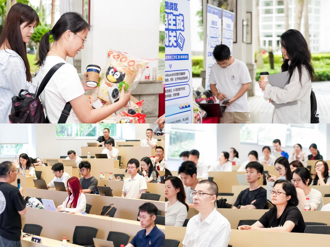 活动现场还设置了“场景挑战实践”环节。主办方提供了多个真实业务场景的挑战任务,师生组队运用AI工具动手解决,技术导师巡回指导。