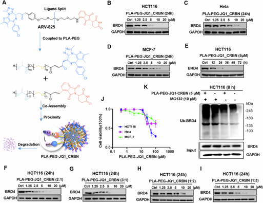 图2:基于“分合”策略形成的新的基于PLA-PEG的新颖降解剂及其降解目的蛋白的结果图