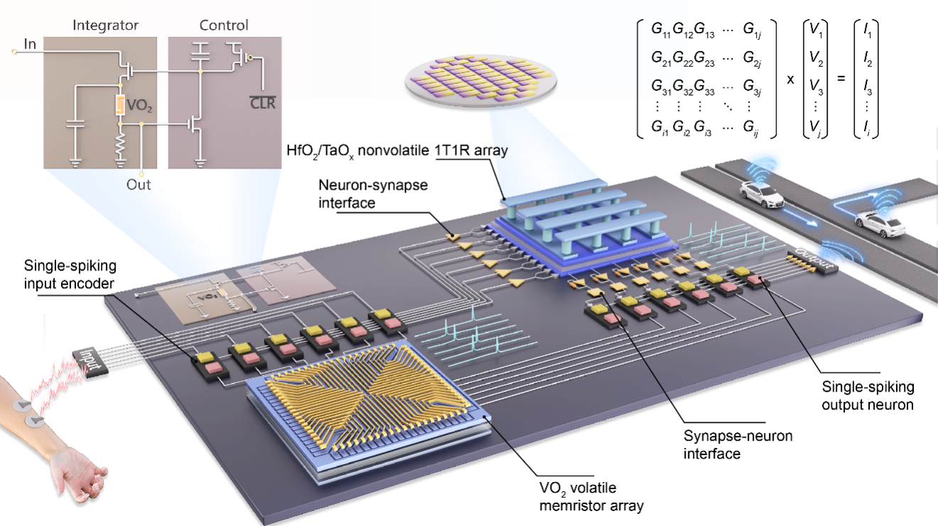 北京大学信息工程学院/广东省存算一体芯片重点实验室杨玉超教授团队于2026年1月15日在Nature Electronics连发两篇,都是基于易失性+非易失性忆阻器协同架构,分别从单脉冲高效推理与抗噪在线学习两大维度,攻克了类脑计算的核心问题。