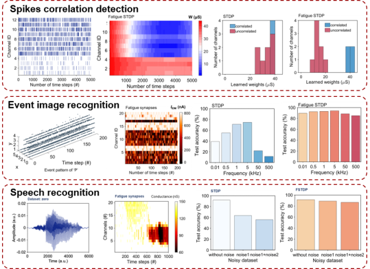 类脑计算的“抗噪”挑战随着人工智能向边缘端延伸,脉冲神经网络(SNN)凭借其稀疏、事件驱动及高能效的脉冲编码方式,被视为超越传统冯·诺依曼架构、逼近生物大脑能效的关键技术路径。然而,当前SNN主要依赖传统的STDP(脉冲时序依赖可塑性)学习规则,该规则对输入脉冲的速率高度敏感。在处理包含高频背景噪声(如环境音、图像噪点)的复杂时序信息时,传统硬件难以像生物大脑一样有效滤除噪声并提取特征,导致系统鲁棒性差、功耗激增。生物突触通过“短时程抑制(Fatigue)”与“长时程记忆”的协同作用,天然具备对高频信号的过滤与频率适应能力。如何在硅基芯片上,利用CMOS兼容工艺高效模拟这种复杂的生物物理动力学,是当前神经形态计算领域的国际前沿难点。