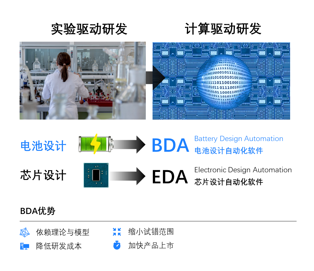 如何翻越这三座大山?郑家新团队借鉴半导体行业电子设计自动化(EDA)软件的成功经验,并结合AI for Science算法在电池领域的突破性实践,创新性地提出了BDA这一新范式。